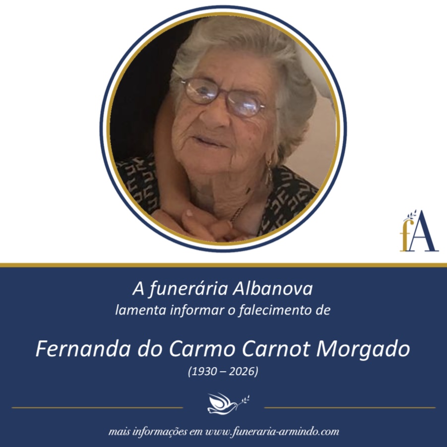 Lamentamos informar o falecimento de Fernanda do Carmo Carnot Morgado.