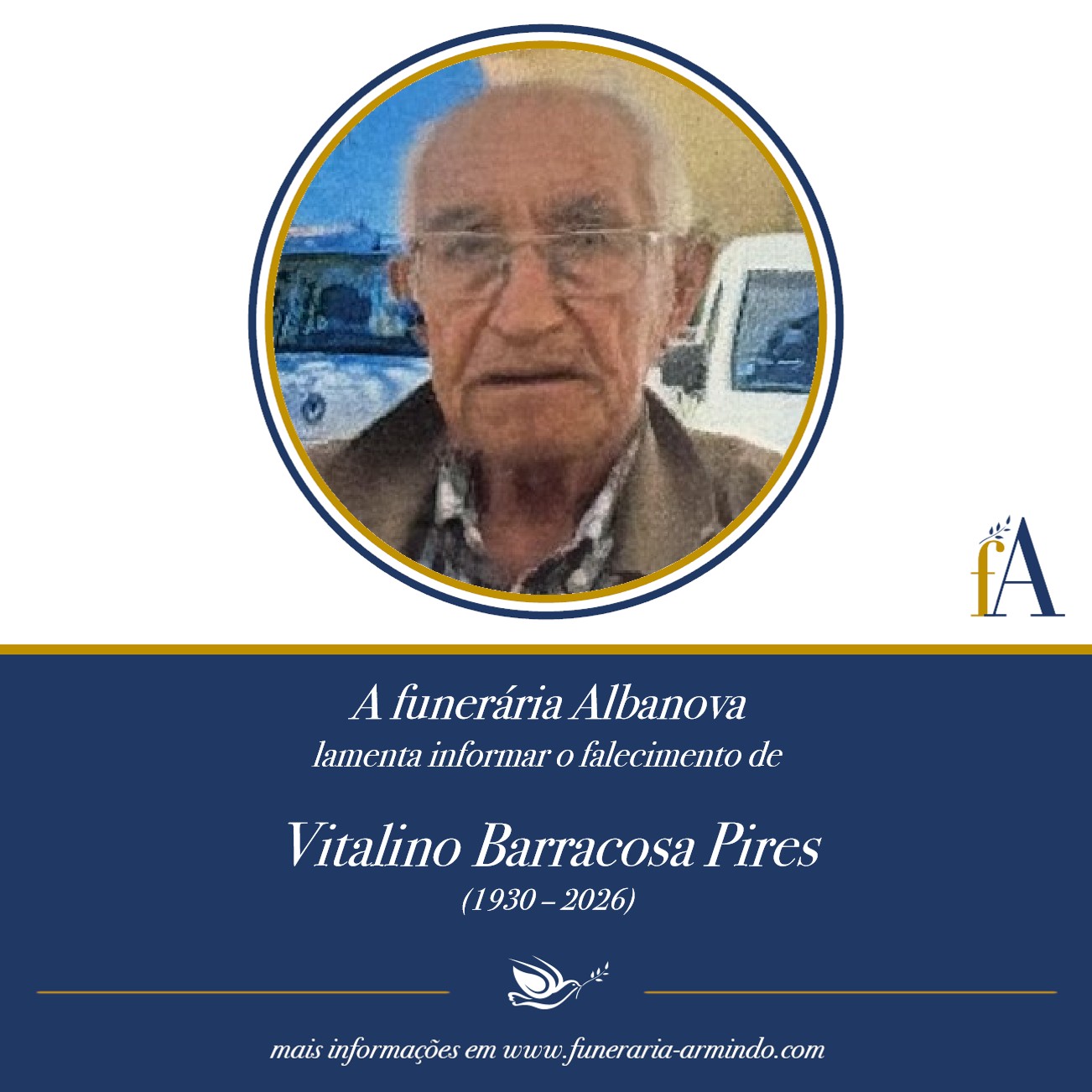 Lamentamos informar o falecimento de Vitalino Barracosa Pires.